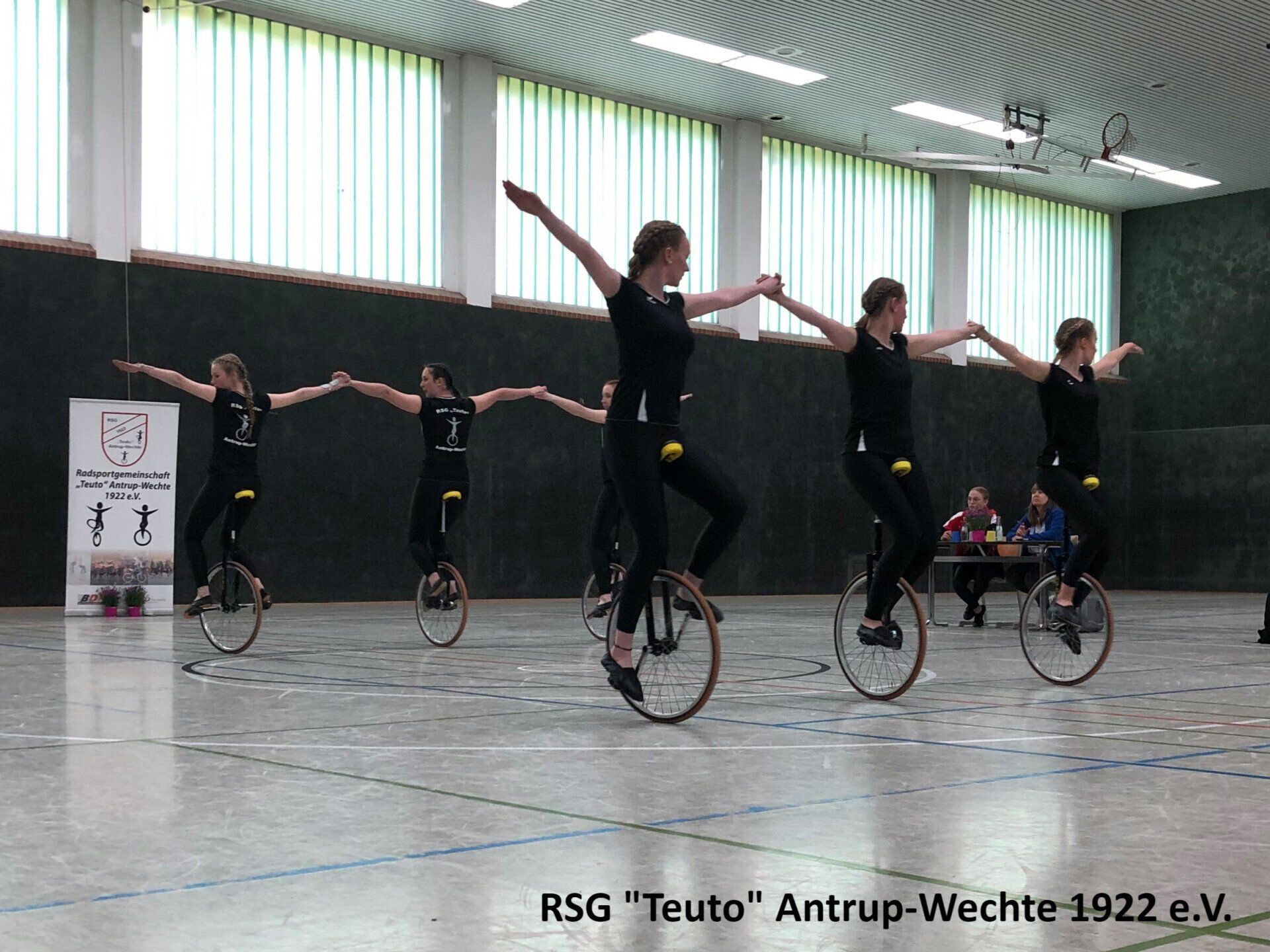 Darüber hinaus durften sich die Mädels auch noch in der Disziplin 6er Einradsport Juniorinnen präsentieren. Dabei konnten die letzten Unsicherheiten in der Kür identifiziert werden und hoffentlich bis zum nächsten Wochenende ausgemerzt werden.